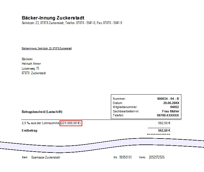 | Innung: | Beitragsrechnungen der hier angegebenen Innung werden geändert. | ||||