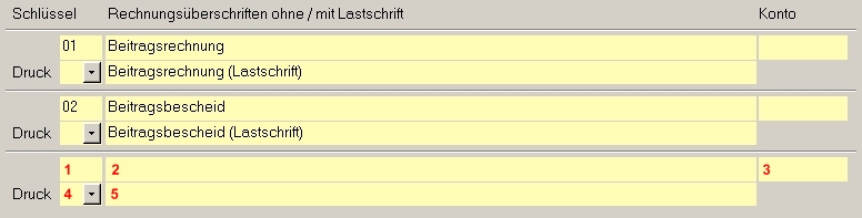 | 3 | Das Feld "Konto" ist für die im Programm enthaltene kaufmännische Buchhaltung zuständig. Es gibt das Gegenkonto der automatischen Verbuchung einer Beitragsrechnung an. |