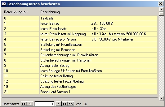 Hier sind die Nummern und Texte der Berechnungsarten hinterlegt.