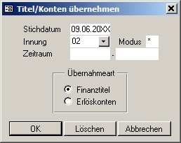 Übernimmt die ausgewählten Titel bzw. Konten. | ||||