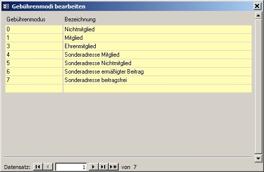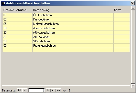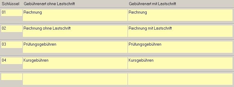 Hier haben Sie die Möglichkeit, einzelne Gebührenarten festzulegen und später danach zu sortieren.
