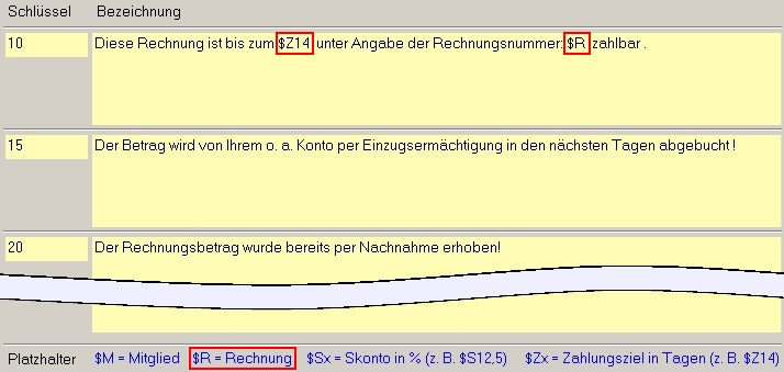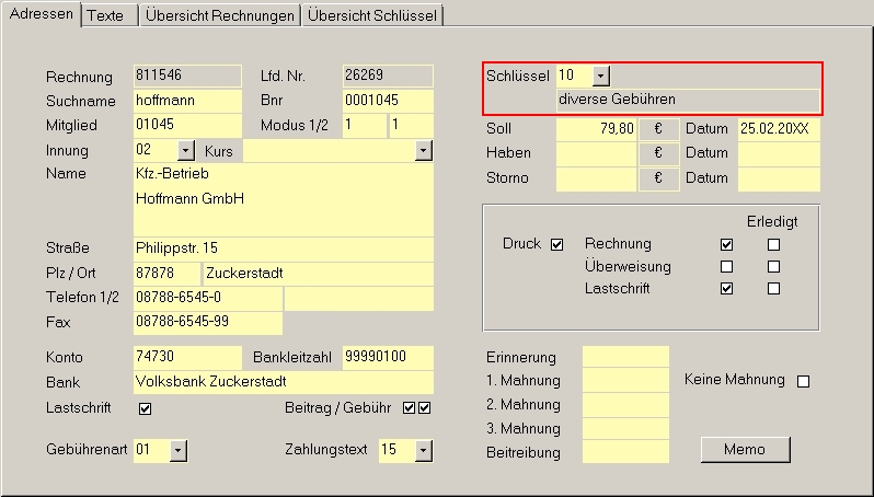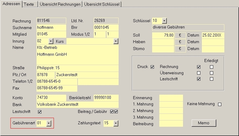 Damit haben Sie die Möglichkeit, von Rechnung zu Rechnung die Texte für Rechnungen bei Gebühren bzw. Lastschriften auszutauschen und schnell den aktuellen Gegebenheiten anzupassen.