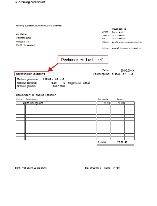 von Gebührenrechnungen gestellt. Sie können angeben für welche Innung