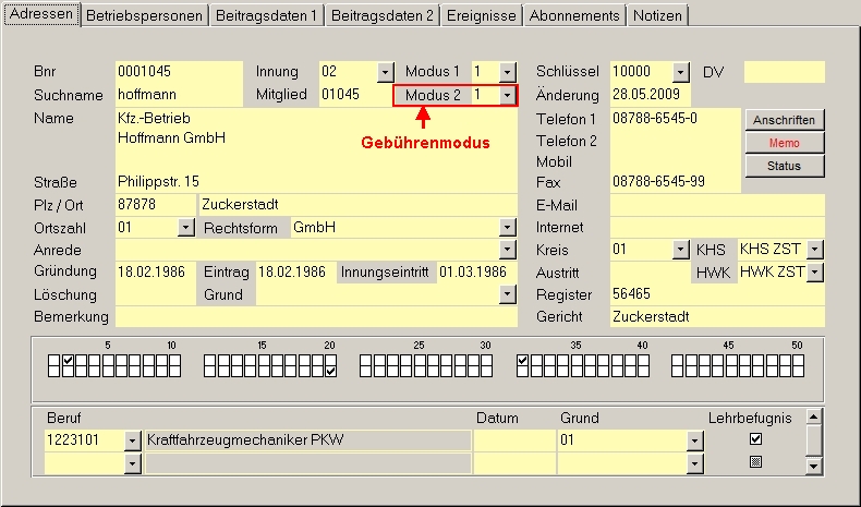 Modus 2 hat für das Gebührenwesen Vorrang vor Modus 1. Er muss nur dann eingegeben und im Adressenwesen gepflegt werden, wenn Abweichungen zum Modus 1 vorhanden sind. Ansonsten bleibt das Datenfeld Modus 2 leer.