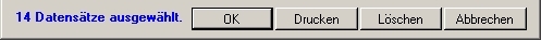 Wenn Sie OK klicken, werden die Datensätze, die den ausgewählten Kriterien entsprechen zur Druckauswahl hinzugefügt. Anstelle des Buttons "Ausgewählte Datensätze", wird Ihnen die Anzahl der Datensätze in Blauer Schrift angezeigt. | ||||