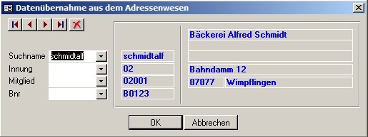 Datenübernahme aus dem Adressenwesen: