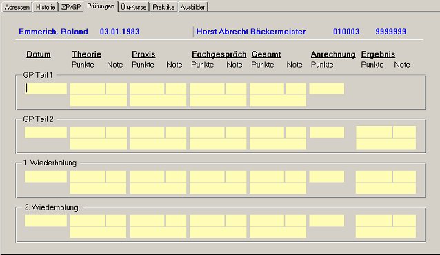 In diesem Karteireiter werden die Prüfungen der Lehrlinge