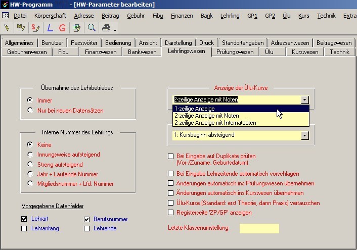 Dies ist einstellbar unter "Extras / HW-Parameter / Lehrlingswesen".