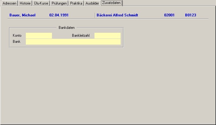 | Zusatzdaten | Bankverbindung des Lehrlings. |