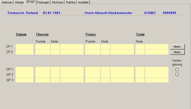 Zwischenprüfungen (ZP 1 und ZP 2) sowie Gesellenprüfungen (GP 1 bis GP 3).