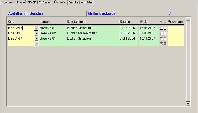 Bei diesem Karteireiter sind die Ülu-Kurse des Lehrlings