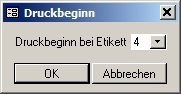 Bei 2- und 3-bahnigen Etiketten, erscheint vor dem Druck noch eine Abfrage, ab welcher Etikettenposition Sie drucken möchten. Dies ermöglicht Ihnen, auch bereits angebrochene Etiketten-Bögen für den Adressendruck zu verwenden. (Etikettenformat / Nummerierung)