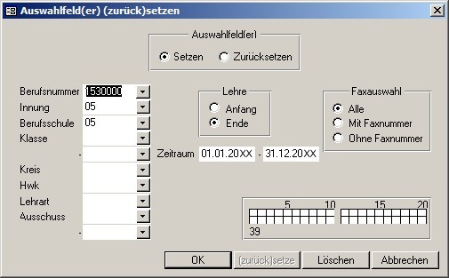 Mit diesem Menüpunkt kann man automatisiert Häkchenfelder des Lehrlingswesens setzen oder entfernen.
