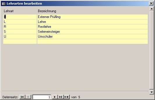 Hier werden die Lehrarten hinterlegt, die Sie beim Lehrling