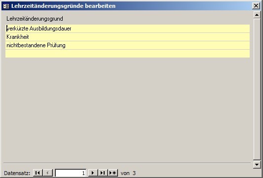 Hier können Sie Gründe für die Änderung der Lehrzeit hinterlegen.