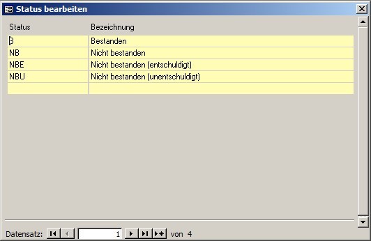 Hier können Sie verschiedene Prüfungsstati eingeben.