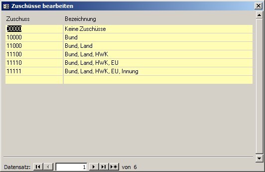 Hier können Sie verschiedene Zuschuss-Geber anlegen bzw. vorhandene bearbeiten.