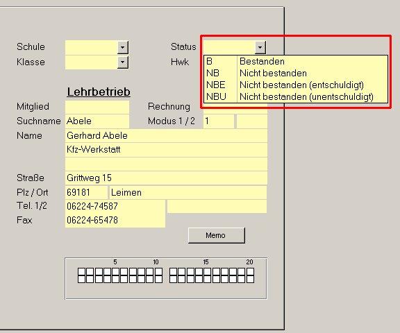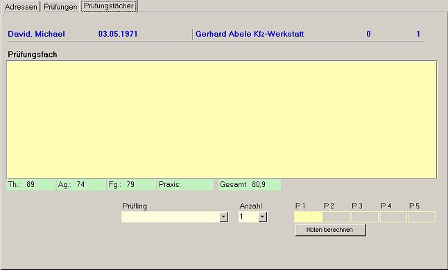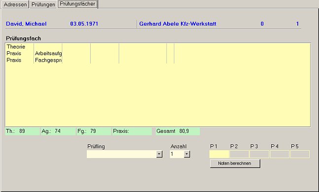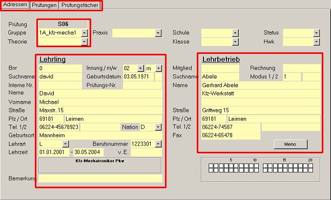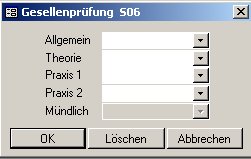 Haben Sie die Prüfung ausgewählt, bestätigen Sie mit "OK", dann öffnet sich ein neues Fenster mit den Daten des Lehrlings.