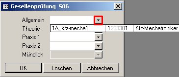 Hier können Sie auswählen, ob Sie alle Lehrlinge einer allgemeinen Prüfungsgruppe, alle einer Theorie- oder alle einer Praxisprüfung angezeigt haben möchten.