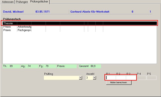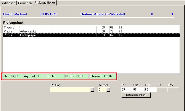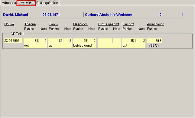 Die Noten werden berechnet und vorn in der Registerkarte "Prüfungen"