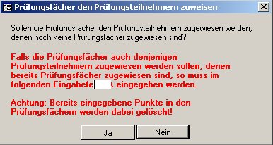 Betätigen Sie nur die Schaltfläche "Ja", werden Fächer den Prüflingen zugewiesen, die noch keine haben.