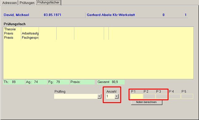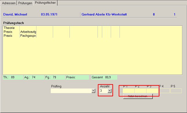 Trage ich also 3 Prüfer ein, erscheinen Eingabepunkte für 3 Prüfer,