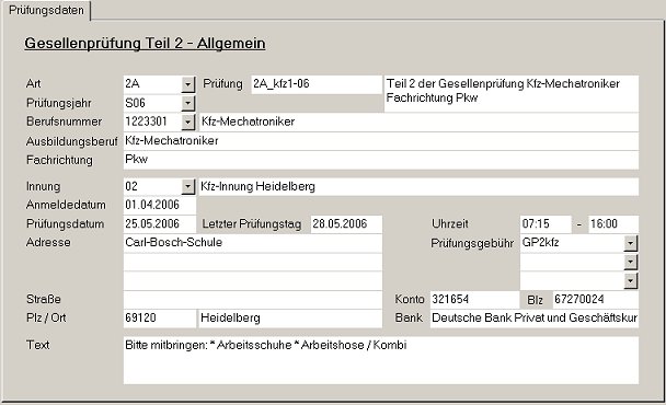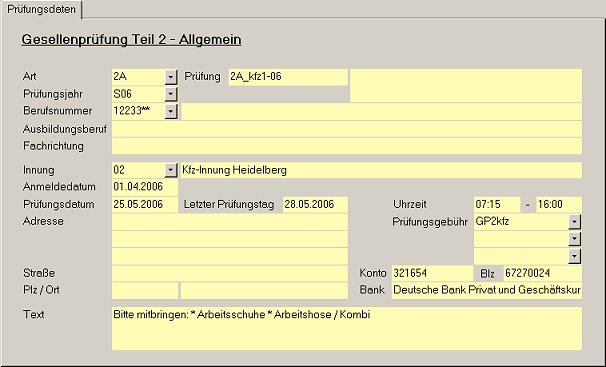 | Innung: | die Innung, von der die Prüfung durchgeführt wird |
