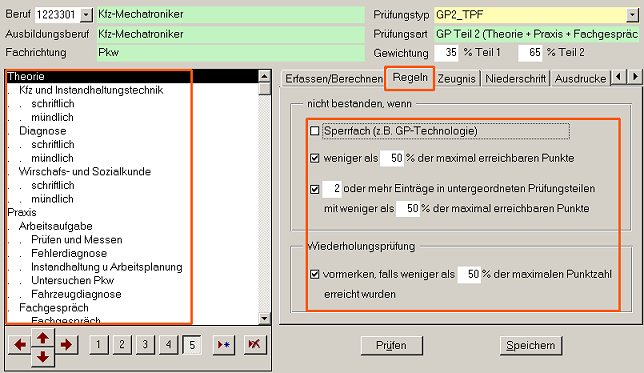 Hierbei handelt es sich um die numerische Möglichkeit, Prüfungsfächer einzugeben und Bestehensregeln zu hinterlegen.