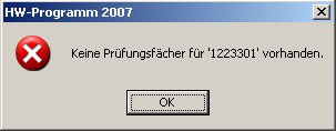Einfach mit "OK" bestätigen - dann können Sie Prüfungen für die ausgewählte Prüfungsnummer anlegen.