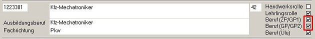 | Berufsnummer: | Diese Prüfungsgruppe gilt für alle Lehrlinge, die der hier anzugebenden Berufsnummer zugeordnet sind (z.B. 1223301 für Kfz-Mechatroniker Fachrichtung Pkw-Technik) |