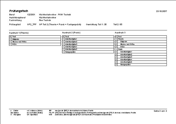 komplette Prüfungsstruktur in Papierform auszugeben: