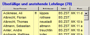 anstehenden Lehrlinge sowie der Lehrlinge, die bereits überfällig