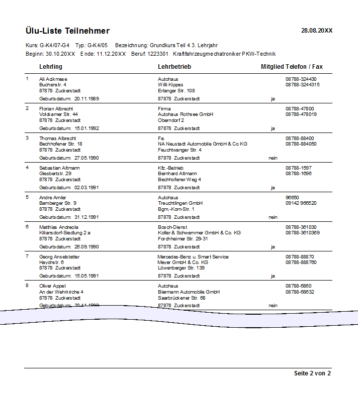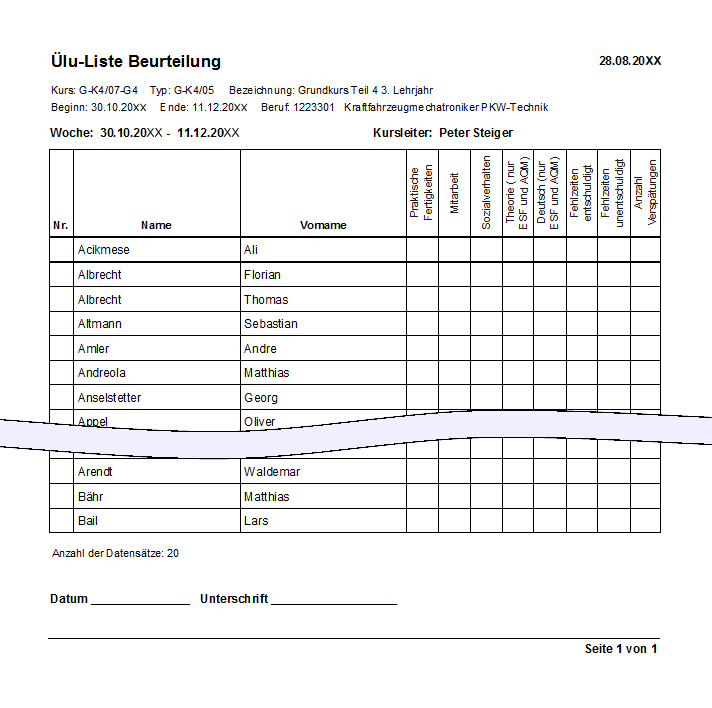 Diese Liste können Sie auch erhalten, indem Sie auf "Ülu / Ülu-Listen / Anwesenheits-/Teilnehmerliste" klicken.