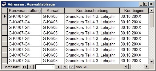 Nun wählen Sie Ihren Kurs aus und bestätigen mit "OK". Sie erhalten dann eine Vorschau der exportierten Daten und eine Abfrage, wie die Exportdatei heißen und wo sie gespeichert werden soll.