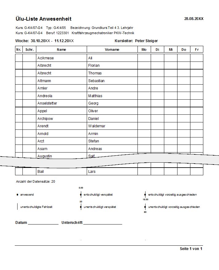 Mit diesem Symbol erhalten Sie eine Anwesenheitsliste. Sie erhalten folgende