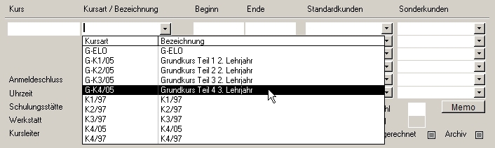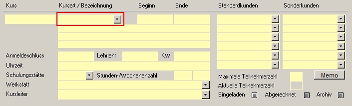 Im oben markierten Feld "Kursart / Bezeichnung"