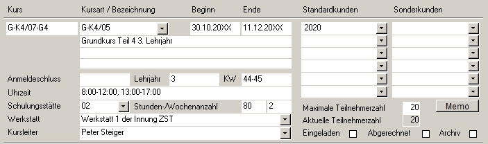 Anmeldeschluss, Lehrjahr, Schulungsstätte etc. sollten eingegeben