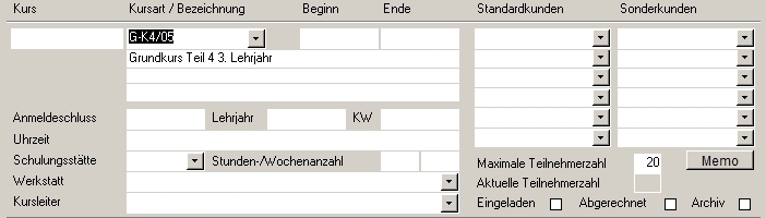 Damit wird ein Teil der Felder schon ausgefüllt und der Kurs dieser Kursart