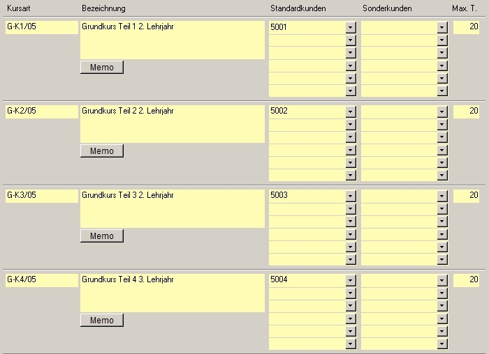 Mit den Kursarten können Sie Kurse z.B. nach Anfänger, Fortgeschritten