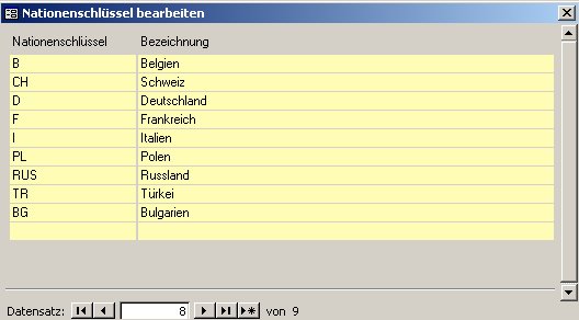 In diesem Menü sind Nationen mit ihren Abkürzungen hinterlegt. Sollten Sie weitere Nationen benötigen, können Sie diese hier hinzufügen.