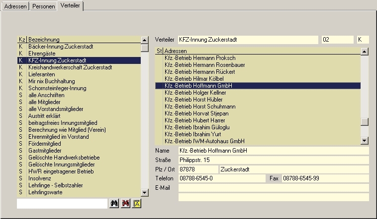 der eigentliche Datensatz aussieht. Sie können damit Kombinationssuche betreiben, d.h., Sie können nach einem Name in einer Stadt suchen mit einem Häkchenfeld versehen etc. |